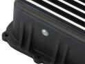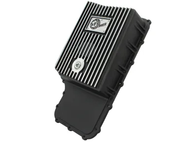 aFe Powers new deep transmission pan brings performance engineering to the protection of your trucks transmission. This transmission pan has additional capacity for 3 to 4 more quarts over stock at the factory line, a magnetic drain plug and a 1/8" NPT port for your temperature sensor. Built-in internal and external fins transfer heat from the fluid to the outside air for maximum cooling. This transmission pan is constructed out of durable die-cast A380 aluminum with reinforced ribs and a wrinkle black powder-coating for maximum strength and styling.