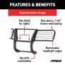For the conqueror in every truck, Jeep or SUV owner, the ARIES grille guard offers the tough, trail-ready look you demand. It begins with a one-piece frame of 1/4" thick welded plates and 1-1/2" mandrel-bent tubing for a solid build. Each one is made with a vehicle-specific design for a better fit, easier install and more secure mounting. The side brush guards are custom-bent to contour to the profile of your vehicle, while the mounting brackets are positioned for a no-drill application. This means pre-existing factory holes are used to ensure optimum fitment and less vibration. This particular custom grille guard fits specific years of the Toyota 4Runner (see application info to verify). The ARIES grille guard also makes it easy to customize the look of your vehicle. Not only does the crossbar have two pre-drilled holes for mounting aftermarket LED lights, but many of our grille guards are also available in two finish options -- polished stainless steel or semi-gloss black steel. The stainless steel grille guard is made with 304 stainless, being high in nickel content and truly resistant to rust and corrosion. This option comes with a mirror-like polished finish for a definitive shine. The semi-gloss black grille guard is made with high-strength carbon steel for added strength. It features a tough, dual-layer E-coat and black powder coat finish to protect against rust, scratches and the elements. All ARIES grille guards also come with rubber stripping along the risers to protect the frame against scuffs and scratches.