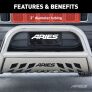 The ARIES 3" bull bar is made for those who face the uncertain road without fear. This particular model is constructed from 304 stainless steel. 304 stainless is high in nickel content, allowing the bull bar to easily resist water, road salt and rust and maintain its mirror-like polished finish in spite of the elements. Other available finishes include high-gloss black stainless steel, textured black steel and semi-gloss black steel. Customizing the look of your vehicle is simple with the ARIES 3" bull bar. It is equipped with pre-drilled light mounting holes and a removable skid plate. The center crossbar features two pre-drilled holes that readily accept an LED light bar or two LED work lights. The skid plate is made from 304 stainless steel and has a brushed finish to stop rust and hide scratches and scuffs. It also features an aggressive, ARIES-exclusive cutout pattern and can be removed for a customized look. Each ARIES 3" bull bar is made a vehicle-specific design, meaning that for each make and model, the bull bar has a custom bend and unique mounting brackets. This allows for the best possible fit on your vehicle and ensures solid attachment. The brackets also use pre-existing factory holes in the vehicle's frame to eliminate drilling, speed up installation and increase rigidity. This bull bar fits select model years of the Ram 2500 or 3500 and Dodge Ram 1500, Ram 2500 or Ram 3500 (see application info to verify fitment).