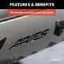 - Removable, brushed 304 stainless steel skid plate deflects small road debris