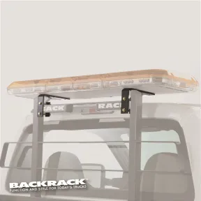 Light Bar Bracket clamps to horizontal tube assembly, provides base to sit light bar on and can be drilled and bolted directly to face of uprights if desired. Bracket places light bar base even with tops of upright posts and the clamping installation is suitable for Backrack only. Holes punched in L Brackets (may require drilling to fasten certain light bars). Includes one pair of heavy L Brackets and fasteners.