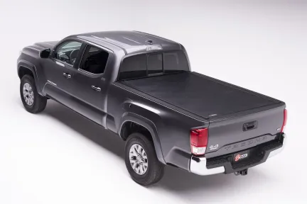 The Revolver X2 hard rolling truck bed cover features exclusive automatic rotational locking rails that secure the cover the entire length of the bed on each side. This hard aluminum roll-up cover easily rolls up with one-handed operation and allows use of every inch of the truck bed without blocking your rear window. This cover does it all with unrivaled strength, security and style.