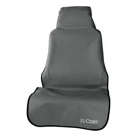 The CURT Seat Defender car seat cover is a universal, use-as-needed seat cover protection system that readily installs whenever you need it. It provides an instant defense against dirt, spills, pet dander and any other threats to your vehicle's interior. What makes it unique is its use-as-needed design. Rather than being a permanent cover-up for unsightly interior that has already been damaged, Seat Defender seat covers act as a barrier to prevent the damage before it happens. Unlike seat covers that require tedious installation, the Seat Defender is designed to be easy to put on and take off, whenever needed. It attaches securely to the headrest and conforms to the shape of the seat, giving the seat a tough, waterproof outer layer. CURT Seat Defender seat coverings are also easy to store and keep clean. Because it is not a permanent seat cover, it is designed for fast cleanup, fast foldup and fast installation the next time you need it. It easily protects against wet clothes, dirty tools, muddy sports equipment, shedding pets, sandy swimsuits, messy fast food and more. It is also 100% machine washable and can be stored in any small compartment in your vehicle. The CURT Seat Defender is made out of a two-sided material to provide a sophisticated barrier against potential threats. The underside is a layer of water-resistant thermoplastic rubber (TPR). TPR is durable and wear-resistant and provides added comfort and safety by gripping the surface of the seat. The top side is a woven 600-denier terylene fabric that keeps dirt and spills out and maintains comfort for the user. Seat Defenders are the perfect seat covers for cars, trucks, minivans, SUVs and more. They're great for pet owners, outdoor enthusiasts, sports lovers, industrial and commercial workers, frequenters of the beach or boat landing and many others. They also make great baby car seat covers!