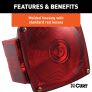 Trailer lights can be fragile, but they are completely necessary for towing. Whether you're a contractor on your way to the jobsite or just a casual fisherman heading to the boat landing, you need working trailer lights to tow safely and legally. For any towing setup, CURT offers quality, DOT-approved trailer lighting, including complete wiring kits, combination lights and replacement lighting components. This CURT combination light is designed to be a driver-side trailer light. It features a molded housing and molded lenses to protect the internal components from the elements, and it uses phosphor-bronze contacts to maintain a solid electrical connection to your vehicle. This taillight comes with red lenses and two extra connection points to provide hookups for other lighting fixtures. It easily and securely mounts with the included hardware and features an additional light for license plate illumination.