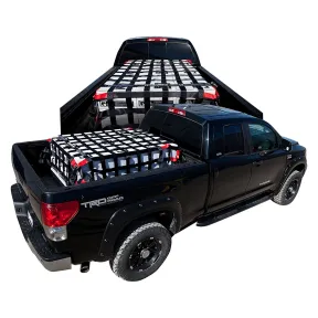 Quarantine's Exterior Cargo Restraints connect to the truck bed using four provided adjustable FS Tie Downs straps equipped with unique length adjusting hardware and mountaineering style aluminum quick connect carabiners. The straps of the exterior cargo restraint system adjust to 50 inches for extra-high loads and the detachable design allow for a wide range of tie-down applications. You can choose from three different suggested connector points on the Exterior Cargo Restraint System to enable proper securement of larger to smaller cargo loads. The exterior cargo restraints is proven to reduce setup time and provide exceptional ease of use in comparison to other products on the market. Quarantine Restraints sets the standard for cargo securement. Quarantine's truck and trailer exterior cargo restraints serve a variety of applications within the oil and gas industry, survey and seismic sectors, as well as government and utilities. products surpass all job site safety standards and are compliant to DOT regulations pertaining to certified cargo securement. Environmental issues of lost cargo and the annoyance of traffic fines are not the leading factor for products creation, but rather the goal of exterior cargo restraint system is to eliminate the serious danger an unsecured load can cause on roads and highways. We put ourselves in the mind of the person driving behind 'that guy' with a pickup truck that suddenly loses his load, and a wheel-barrel and spare tire land and bounce on the highway directly in front of you. We are making it mission for industry and the public to view cargo securement as no less serious of a safety concern then clipping on your seatbelt. It is with this in mind we have created exterior cargo restraint system.
