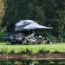 • A large, connected awning with a durable, lightweight design that shields you from both sun and rain, creating a comfortable, weather-protected living space at your campsite